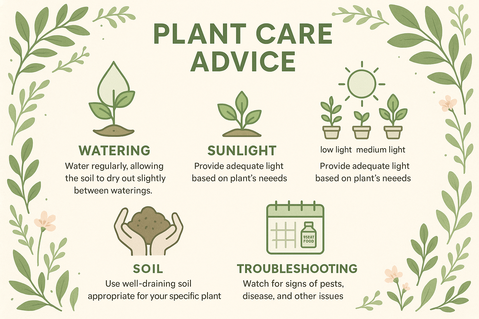 Ensure your houseplants and flowers thrive with our expert Plant Care Advice. Learn precise watering schedules, ideal lighting conditions, and proper fertilization techniques tailored to your specific plants. Discover tips on pruning, repotting, and pest management to maintain healthy growth and vibrant blooms. With this guidance, you can confidently extend the life and beauty of your greenery.